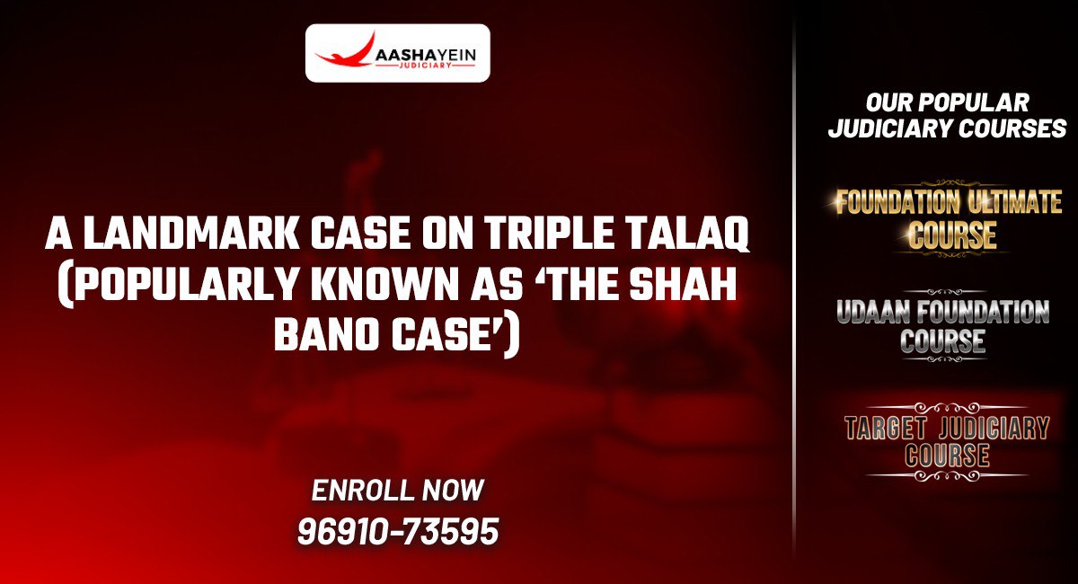 Mohd. Ahmed Khan vs. Shah Bano Begum AIR 1985 SCR (3) 844] DATE OF JUDGMENT- 23rd April, 1985. BENCH-  D A Desai, E S Venkataramiah, Rangnath Mishra, O C Reddy, Y V Chandrachud. BACKGROUND OF THE CASE- The case revolves around a long battle fought by a muslim woman, Shah Bano (appellant) against the system of triple talaq for the price of hatred by the community as well as her husband. The appellant got married to the respondent in 1932,....